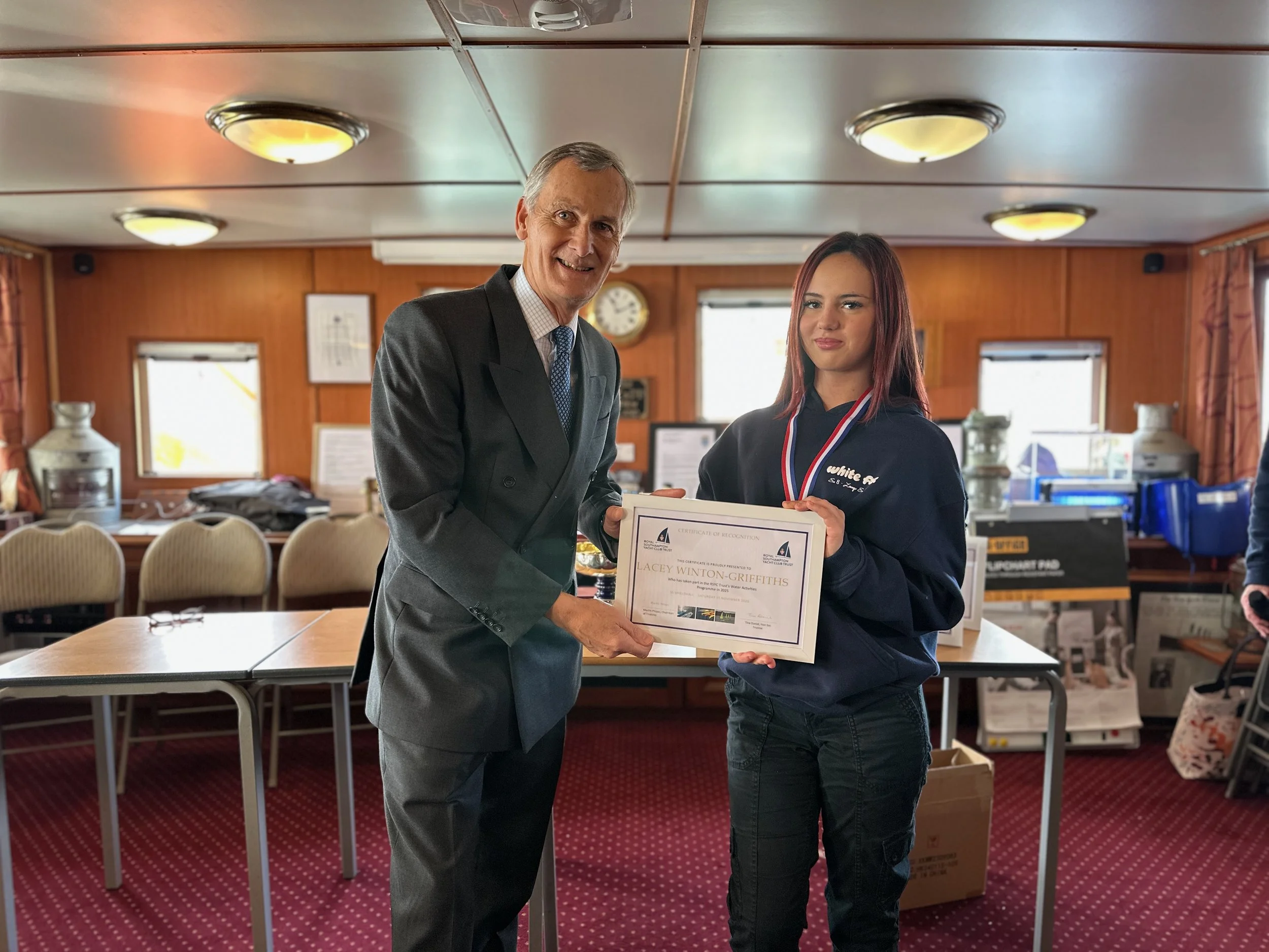 Certificates and trophies are presented to 20 young carers by our patron, HM Lord-Lieutenant Hampshire, Nigel Atkinson. This family celebration event takes place on SS Shieldhall in Southampton.